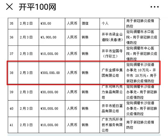 廣東金輝華集團(tuán)有限公司疫情防控貢獻(xiàn)和復(fù)工復(fù)產(chǎn)工作略記 一、涓涓細(xì)流,匯成大海;點(diǎn)點(diǎn)星光,照亮銀河。今年春節(jié),一場突如其來的新型冠狀病毒感染的肺炎疫情牽動著每一個(gè)人的心,更牽動著每一位金輝華人。新型冠狀病毒感染的肺炎疫情(簡稱“疫情”)發(fā)生后,在習(xí)近平總書記:生命重于泰山,疫情就是命令,防控就是責(zé)任的指引下,并在開平市新冠肺炎疫情防控指揮部的統(tǒng)一部署下,開平市紅十字會,慈善會共同發(fā)布了《開平市紅十字