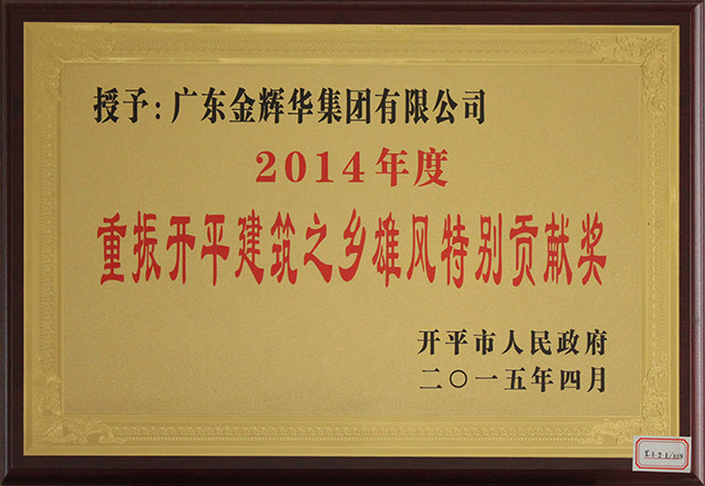 熱烈慶祝我公司榮獲重振開平建筑之鄉(xiāng)雄風(fēng)特別貢獻(xiàn)獎(jiǎng)