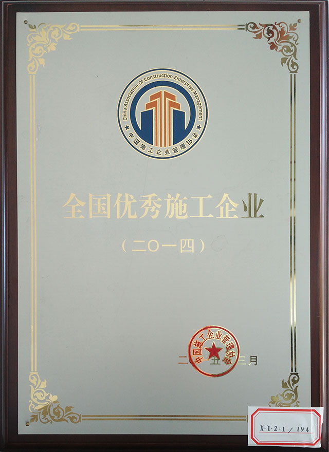 熱烈慶祝我公司榮獲全國優(yōu)秀施工企業(yè)