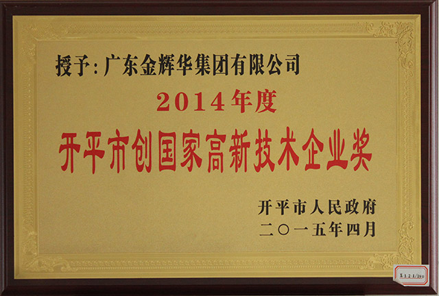 熱烈慶祝我公司榮獲開平市創(chuàng)國家高新技術(shù)企業(yè)獎(jiǎng)