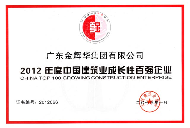 我集團(tuán)公司榮獲“2012年度中國(guó)建筑業(yè)成長(zhǎng)性百?gòu)?qiáng)企業(yè)”稱號(hào)