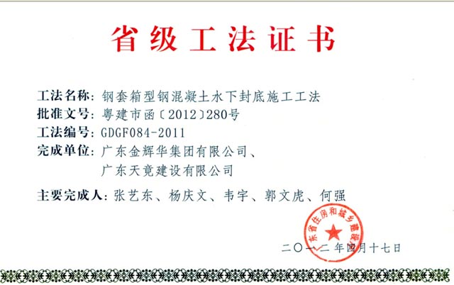 熱烈慶祝我公司工法“鋼套箱型鋼混凝土水下封底施工工法”等四個(gè)工法獲得省級(jí)工法。