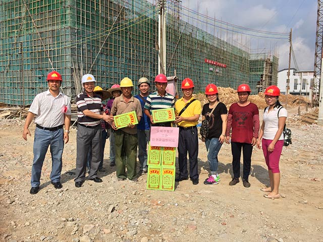 ——記廣東金輝華集團(tuán)有限公司工會(huì)一線“送清涼”活動(dòng)連日來(lái),天氣進(jìn)入夏季高溫季節(jié),氣候日益炎熱,為做好防暑降溫工作,保障生產(chǎn)一線工人的健康,推動(dòng)改善工人生產(chǎn)生活條件,確保工人身體健康平安度夏,工會(huì)認(rèn)真貫徹公司黨委的指示精神,迅速開展夏季“送清涼”活動(dòng)。公司工會(huì)針對(duì)各施工現(xiàn)場(chǎng)生產(chǎn)環(huán)境實(shí)際情況,高度重視,積極籌措資金,制定“送清涼”活動(dòng)方案,并認(rèn)真組織實(shí)施。6月27日,由工會(huì)主席陳維民、工會(huì)副主席高迎春