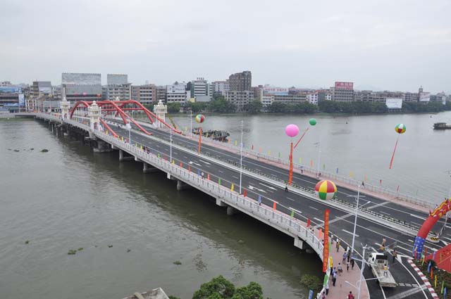 2011年6月22日上午,開平市委、市政府舉辦隆重而簡單的儀式,慶祝潭江大橋落成通車。市領(lǐng)導(dǎo)馮立堅(jiān)、黃耀雄、吳平超、薛衛(wèi)東、趙會(huì)強(qiáng)、張星杰、謝超武、陳偉成、梁和平,以及我集團(tuán)公司項(xiàng)目領(lǐng)導(dǎo)小組成員部門單位的領(lǐng)導(dǎo),參建項(xiàng)目的設(shè)計(jì)、監(jiān)理、施工、監(jiān)測等單位代表共50多人參加了儀式。