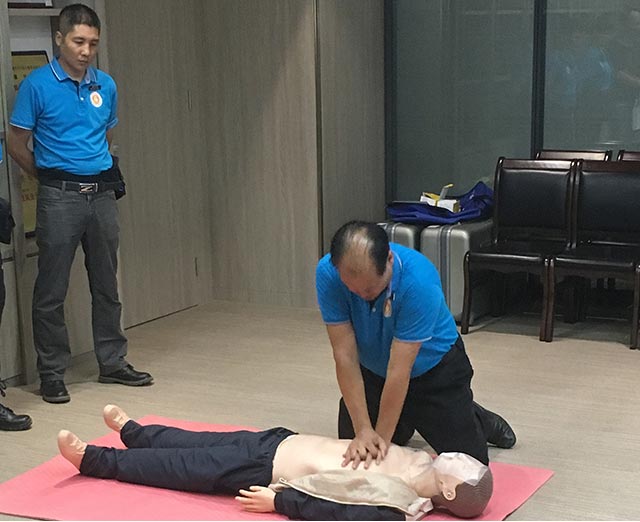 老師們現(xiàn)場為大家展示了開放氣道、胸外按壓、人工呼吸、復(fù)原體位等心肺復(fù)蘇術(shù)之后,讓在場的公司員工輪流親自動手實踐心肺復(fù)蘇、人工呼吸、外傷包扎等技能。大家熱情高漲,表現(xiàn)出了極大的學(xué)習(xí)興趣。