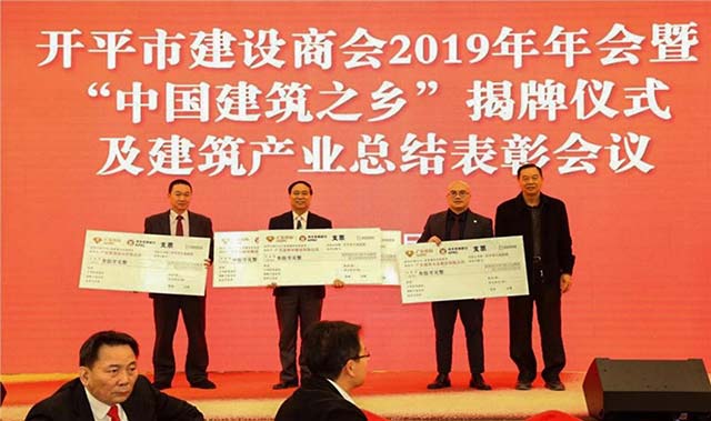 2019年12月27日下午,開平市建設(shè)商會(huì)2019年年會(huì)暨“中國建筑之鄉(xiāng)”揭牌儀式及建筑產(chǎn)業(yè)總結(jié)表彰大會(huì)召開,中國建筑業(yè)協(xié)會(huì)副秘書長景萬,廣東省住房和城鄉(xiāng)建設(shè)廳建筑市場(chǎng)監(jiān)管處處長羅錦榮,廣東省建筑業(yè)協(xié)會(huì)副秘書長謝瑞,江門市住房和城鄉(xiāng)建設(shè)局局長林健生,開平市領(lǐng)導(dǎo)龐正華、鄺積康、張星杰、梁民躍、林國寧等出席大會(huì),并為“中國建筑之鄉(xiāng)”揭牌。并對(duì)獲得國家優(yōu)質(zhì)工程獎(jiǎng)、省級(jí)優(yōu)質(zhì)工程獎(jiǎng)的企業(yè)進(jìn)行頒獎(jiǎng)。