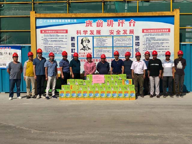 近期連續(xù)高溫,熱浪逼人, 7月17日上午,集團公司工會聯(lián)合工程管理中心的同志們來到翰林印象花園及歐萊寶環(huán)保新材廠房項目施工現(xiàn)場,對在酷暑中堅守崗位、辛勤勞動的一線工人進行了慰問,為他們送去防暑降溫物品。