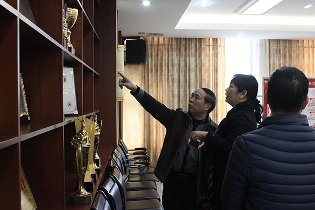 江門市委政研室一行首先參觀了金輝華榮譽墻和黨員培訓活動室,在參觀過程中,集團公司黨委書記張解矛為大家介紹了公司的基本情況以及近來得到的成果。