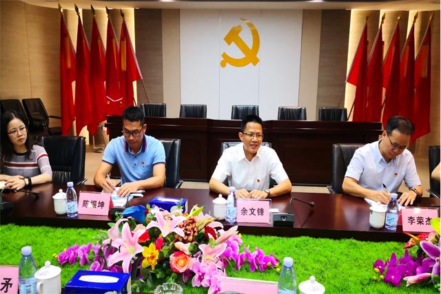 2020年6月30日下午,在開平市委常委、組織部部長(zhǎng)余文鋒同志的帶領(lǐng)下,市委組織部副部長(zhǎng)李榮杰、市委組織部人才股股長(zhǎng)孫得標(biāo),以及長(zhǎng)沙黨工委副書記陳振坤、組織辦曾秋怡等同志,來我司實(shí)地調(diào)研黨建情況。我司董事局主席周珉興、黨委書記兼法定代表人唐國忠、黨委副書記張解矛、黨委委員李慧娟、紀(jì)委委員梁國宏、集團(tuán)副總裁兼開平區(qū)域總經(jīng)理魯大鵬等同志熱情接待了調(diào)研人員。